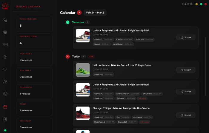 Here you can stay updated on all the upcoming drops directly from your bot.
