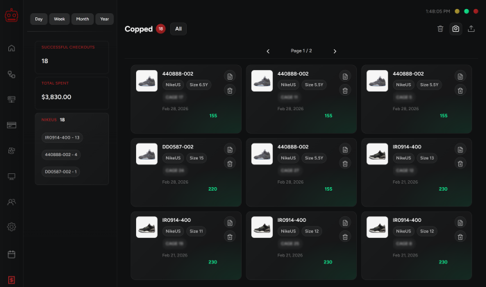 Here you will be able to see all the items you successfully copped. This is how it would look like if you copped an item.