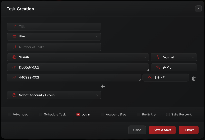 Yes we support running multi-SKU on 1 task! You can create 1 task for every account that has all the SKUs that are dropping in its input field.