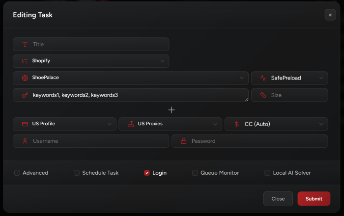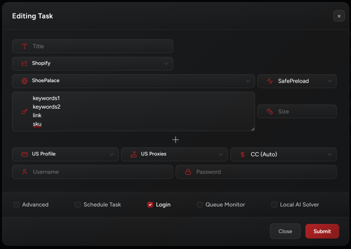Checkout once per item per site: The bot will checkout only once using this profile on a certain site and item (so for example if you are using same billing profile for multiple tasks on Supreme, if you checked out a bogo, it won’t use this card again on a bogo, but it will still use it for other items on the same site).